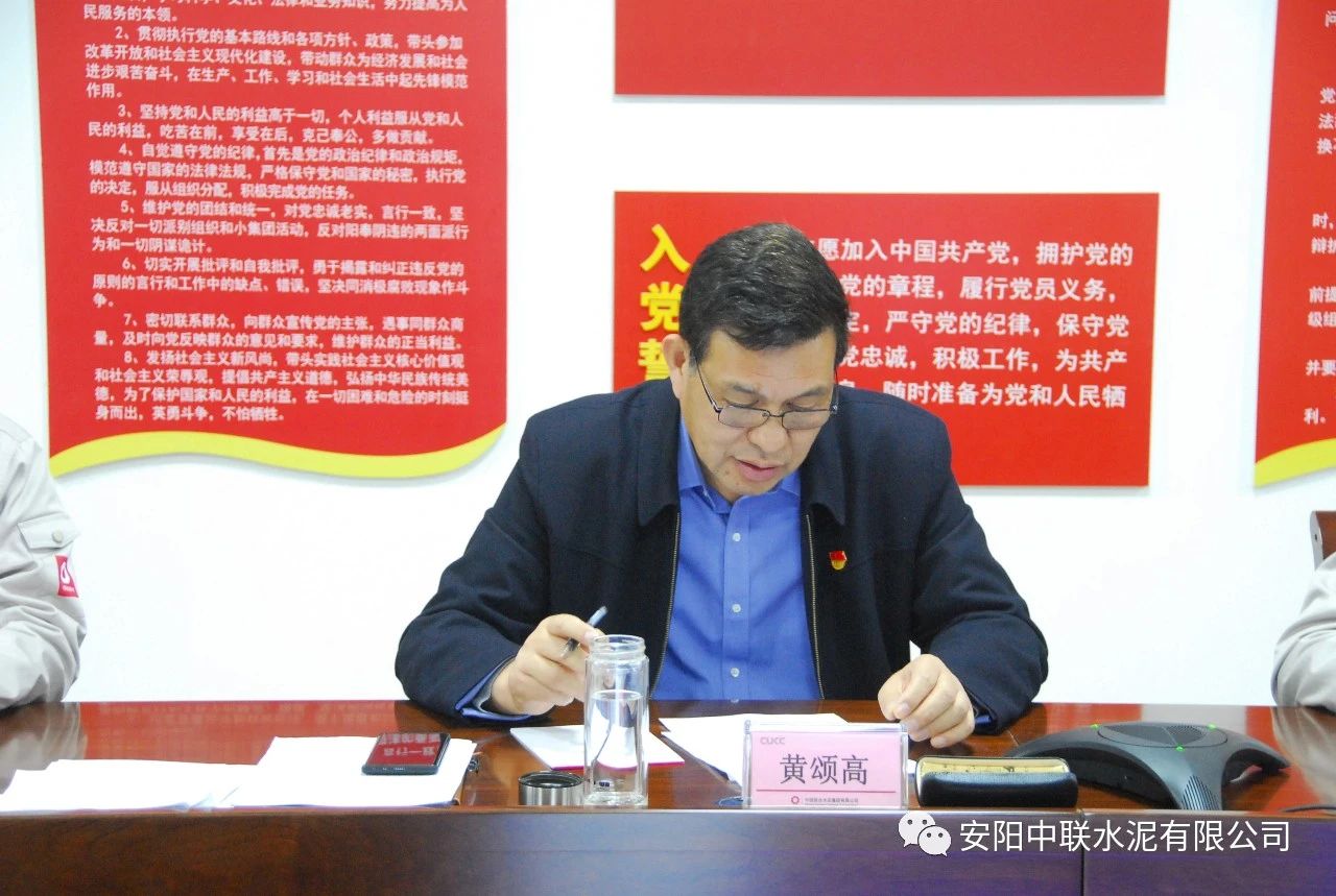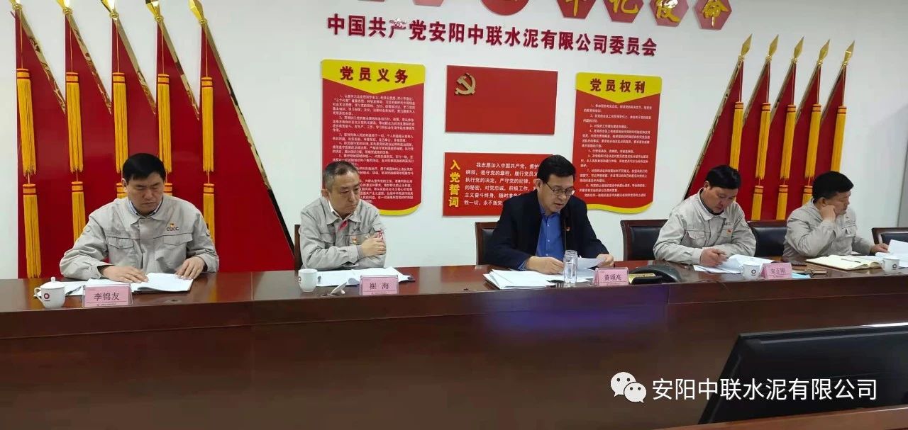 按照中國聯(lián)合水泥黨委關(guān)于認(rèn)真開好2020年度民主生活會(huì)通知要求,2月24日上午,安陽中聯(lián)2020年度黨員領(lǐng)導(dǎo)班子民主生活會(huì)在公司黨員活動(dòng)室召開。中國建材股份黨委常委、執(zhí)行董事、副總裁,中國聯(lián)合水泥黨委書記、董事長崔星太通過視頻連線督導(dǎo)會(huì)議并作點(diǎn)評(píng)講話。中國聯(lián)合水泥黨群工作部主任侯萍、紀(jì)檢監(jiān)察室副主任董治及安陽中聯(lián)黨委委員、領(lǐng)導(dǎo)班子成員參加會(huì)議。安陽中聯(lián)黨委書記、總經(jīng)理黃頌高主持會(huì)議。